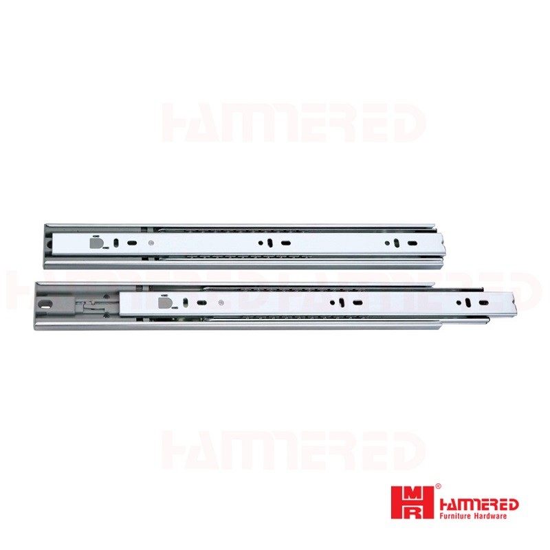 - Ray trượt bi có lưỡi gà bên trong giúp điều chỉnh hướng đi của ngăn kéo và ít xảy ra trường hợp bị kéo lệch.