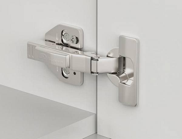 Sự kết hợp giữa bản lề uốn cong giữa và giảm chấn cho hai tủ liền kề nhưng dùng chung một bức tường.