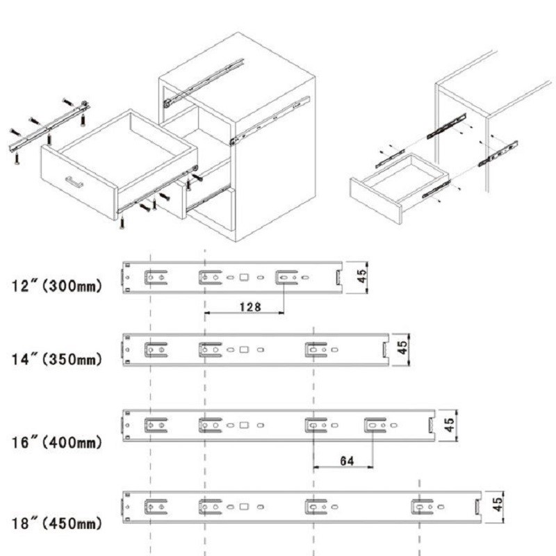 - Lắp đặt đơn giản, hai thanh ray được lắp ở 2 cạnh ngăn kéo.